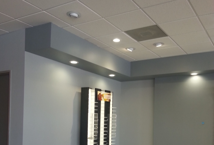 We renovated an existing space to accommodate a new Optical retail. To save money, we re-used the existing ductwork and electrical service for this project. The most interesting part of this project was the lighting requirements. We had to pay close attention to the lighting layout to avoid creating glare.